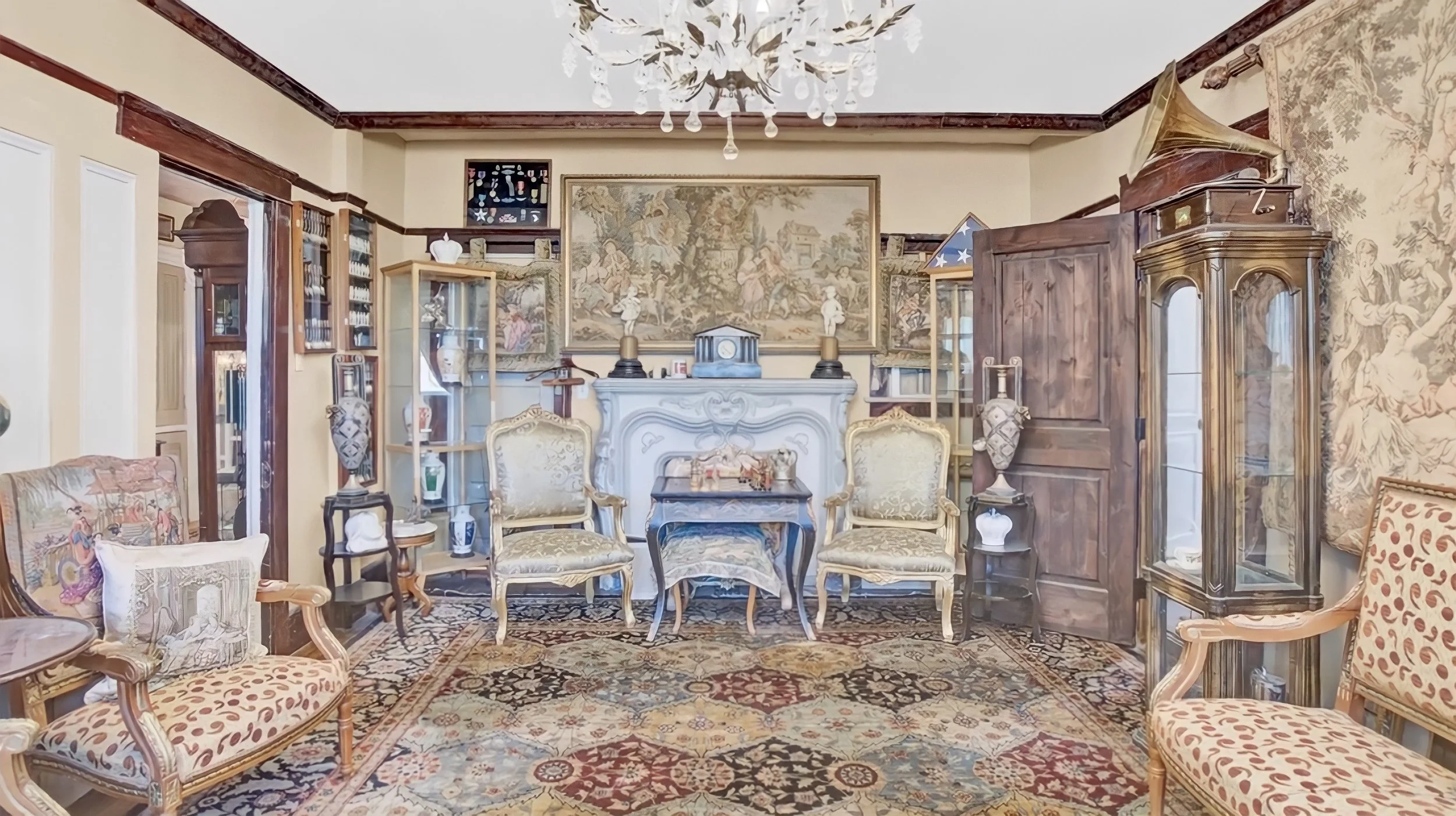 The home features several cigar/smoking rooms that are completely decked out with vintage furniture, detailed woodwork, antiques, old-art, crystals, tapestries and opulent furnishings. It’s like stepping back in a bygone era of someone who “blinged out” their house over a hundred years ago!
