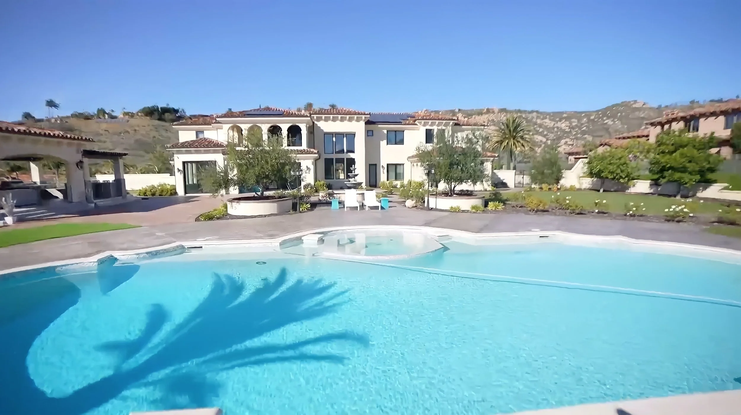 The backyard is every child’s dream: it has a mini golf course with a sand pit, a gazebo for family BBQs, a fire pit that fits 16 people, a large pool and hot tub, and a half-court basketball hoop. The large master bedroom has a built-in mini bar, a balcony overlooking the stunning backyard, and two closets. Brian has so many shoes he uses one closet just for those!